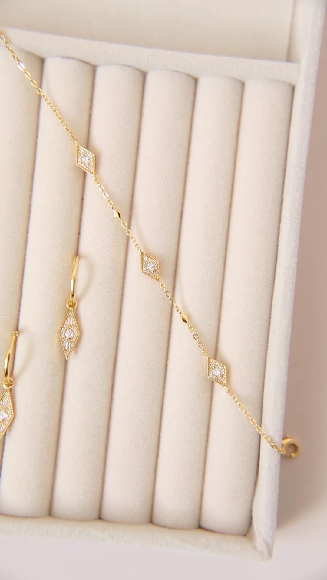 KITE BRACELET // Dainty cubic zirconia rhombus kite charm bracelet