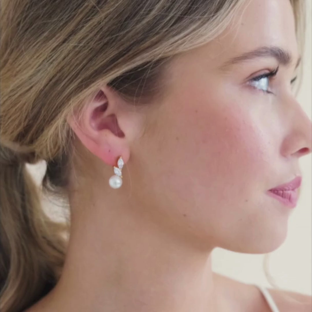 An elegant pair of cubic zirconia and pearl wedding earrings. Inspired by our best selling Eryn drop earrings, we've created the perfect studs! Dainty leaf design in cubic zirconia stones which are so incredibly sparkly!